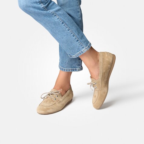 These moccasins with lacing come in a classic design and promise exceptional comfort. Made of soft leather, this pair will fit your feet perfectly and the lacing makes them a pleasure to wear. The flexible sole ensures optimal comfort when walking. Whether you wear them to the office, for a stroll through the city, or as part of a more casual look, these shoes are perfect for combining tradition and modern comfort!Paul Green is renowned for creating women’s shoes of the highest quality, made with exceptional skill and passion. Each one of our shoes is made by expert shoemakers in a process involving up to 160 work steps. The result is a level of quality that you can see and feel.